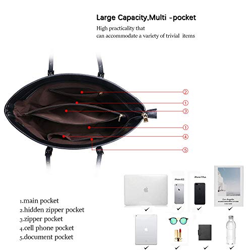 - Gran Capacidad: Este bolsos mujer tiene nueve compartimentos y puede contener muchos artículos. Incluye 3 compartimentos principales grandes, 1 compartimento acolchado para computadora portátil, 1 bolsillo interno con cremallera, 2 bolsas de pared abiertas y 2 bolsas de pluma. Tiene mucho espacio para computadoras portátiles de 15,6 pulgadas, revistas A4, ropa, libros, sombrillas, iPads, teléfonos móviles, carteras, cosméticos y otros artículos esenciales.