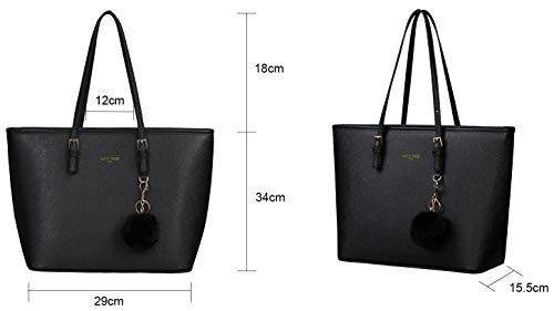 Bolso Mujer Bolso Universidad Mujer Bolso para Portatil 15.6 Pulgadas Grande Impermeable Bolso Shopper Mujer Cuero PU Bolso Shopper Bolsa Negro