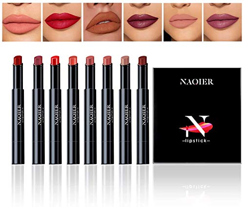 Lápiz Labial Mate, NAQIER 8 Pzas, Hidratante Suave Pintalabios Nude, Lápiz labial líquido a prueba de agua Maquillaje Brillo de labios Velvet