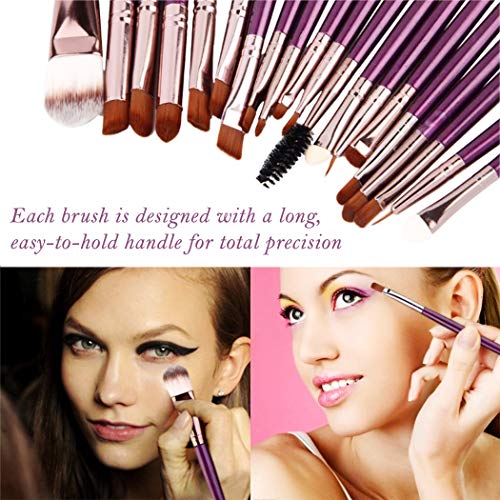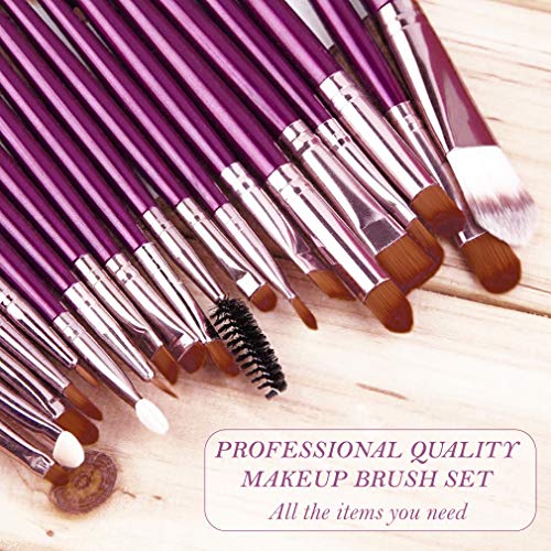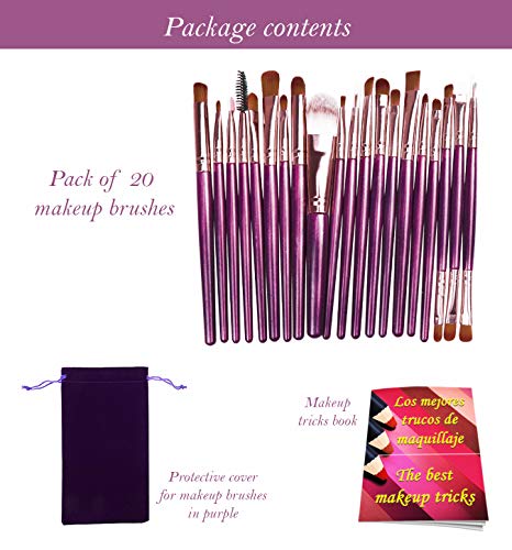 - ❤️SET DE 20 BROCHAS DE MAQUILLAJE PROFESIONAL❤️ Nuestro set de 20 unidades de brochas de maquillaje están hechos de material de fibra sintética de primera calidad proporcionando un tacto y sensación increíbles y no sueltan cerdas ni dañan la piel. Un juego de brochas de maquillaje profesional que incluye brocha para sombra de ojos, de base, delineador de ojos, rímel, labios, corrector, para cejas, etc. Son ideales para un uso diario de líquidos, polvos o cremas.