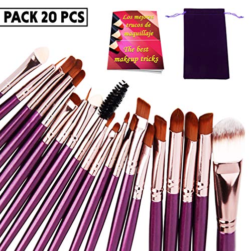 Brochas de maquillaje profesional set 20 uds de alta gama pinceles maquillaje ojos con estuche para llevar y revista trucos de maquillaje cerdas sinteticas suaves