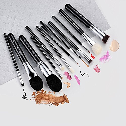- Juego de 11 brochas de maquillaje de grado profesional, cada una hecha a mano para uso tanto de maquilladores expertos como de principiantes.