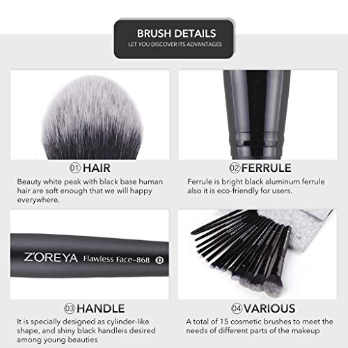 - ❤ ️15 unidades de pinceles de maquillaje Zoreya de alta calidad con precio asequible, diseño clásico en negro, pelo suave, no irritante, no derrame la piel, sin derroche de maquillaje.