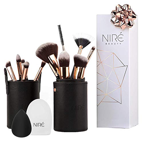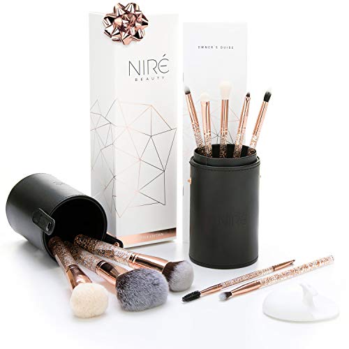 - UN SET DE BROCHAS ESENCIAL: Maquíllate como siempre has querido con este juego de brochas de maquillaje profesional premiado en los Beauty Shortlist Awards que incluye brochas para el rostro y pinceles diseñados por expertos, una esponja de maquillaje Niré Beauty, un cepillo limpiador de brochas Y un estuche profesional que, al abrirse, se convierte en dos soportes de sobremesa.
