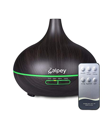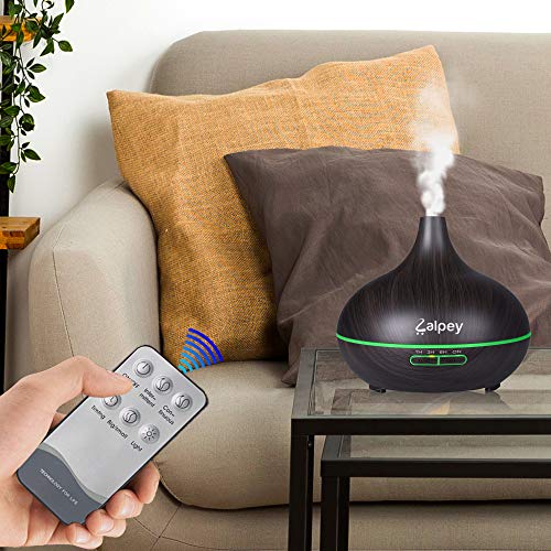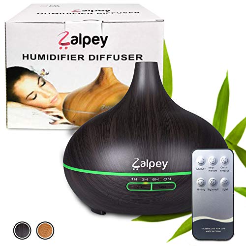 Zalpey 500ml Difusor Aceites Esenciales de Aromaterapia, Humidificador Ultrasónico con Luz Nocturna de 7 Colores y Control Remoto, Función Apagado Automático, Temporizador (Madera oscura)