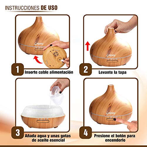- GRAN CAPACIDAD - El tanque de agua de este difusor de aroma tiene una capacidad de 500ml, suficiente para disfrutar de sus beneficios durante 15 horas seguidas. Apagado automático cuando se agota el agua, lo que garantiza la seguridad