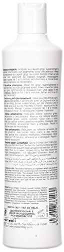 - Enriquecido con ingredientes cosméticos activos, agentes anti-amarillentos y componentes de queratina para neutralizar los reflejos amarillos y dar suavidad y luminosidad al cabello.