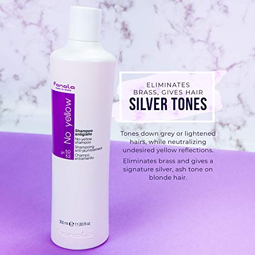 Fanola Champú NO YELLOW Antiamarillo - Especial cabellos grises, aclarados, decolorados, mechas, rubio claro - PROFESIONAL 350mL