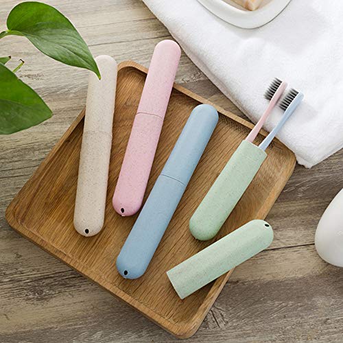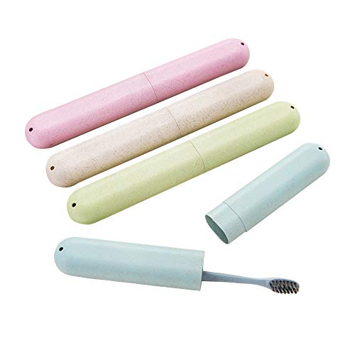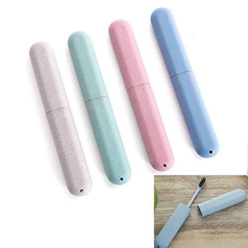 Nuluxi Portátil Paja de Trigo Cepillo de Dientes Caja Titular de Cepillo de Dientes Antibacteriano Fundas de Cepillo de Dientes Ecológicas Perfecto para Viajes Acampar Uso Diario Exteriores (4 Piezas)