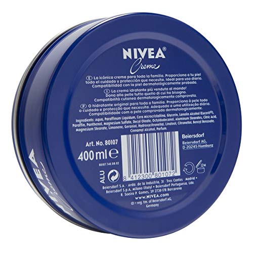- Contenido del envĂo â NIVEA Creme, crema multiusos hidratante para un cuidado universal, 1 x 400 ml, lata.