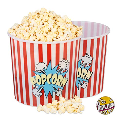 Relaxdays Set de 2 cuencos para palomitas, Noche de cine, 10L, Ø24cm, Reutilizable, Rojo-Blanco