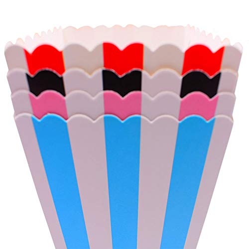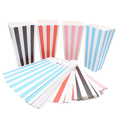 - El paquete contiene: 48 piezas papel impreso a rayas cajas de palomitas de maíz. Total 4 colores: verde, azul, rosa, rojo. 12 piezas para cada color. Estos alegres colores definitivamente aclarará tus mesas de fiesta.