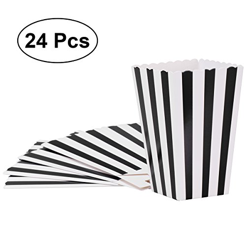 NUOLUX 24pcs popcorn boxes cajas de palomitas envases cajas de cartón bolsas de palomitas de maíz blanco caja de rayas negro