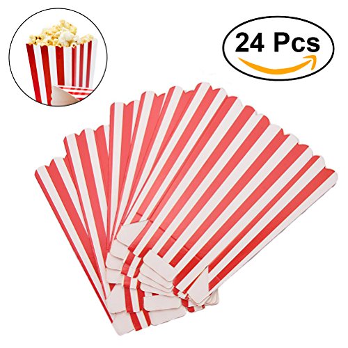 NUOLUX Cajas de palomitas de maíz porta contenedores de palomitas de maíz cartones bolsas de papel caja de raya para el partido, 24pcs