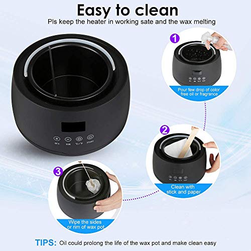 - 【Température Réglable】: La fermeture automatique à temperature contrôle, pour une parfaite fusion de la cire sans risquer de devenir trop chaude, ce qui la rend idéale pour une application uniforme sur la peau. Vous pouvez choisir la température de fusion pour la cire particulière que vous utilisez.