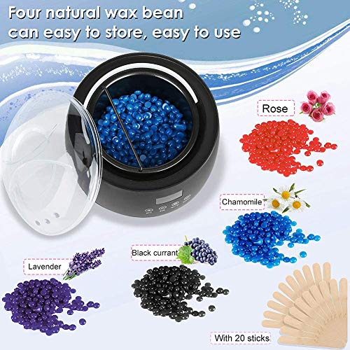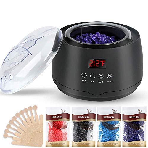 - Kit de calentador de cera: Cuenta con frijoles de cera dura de 4 diferentes sabores, 30 palitos aplicadores de cera, que son fáciles de usar. elimina el 98% del vello corporal no deseado desde sus cejas, brazos, axilas, área del bikini y piernas, dejando la piel limpia y suave de pies a cabeza; viene con 30 espátulas aplicadores de cera
