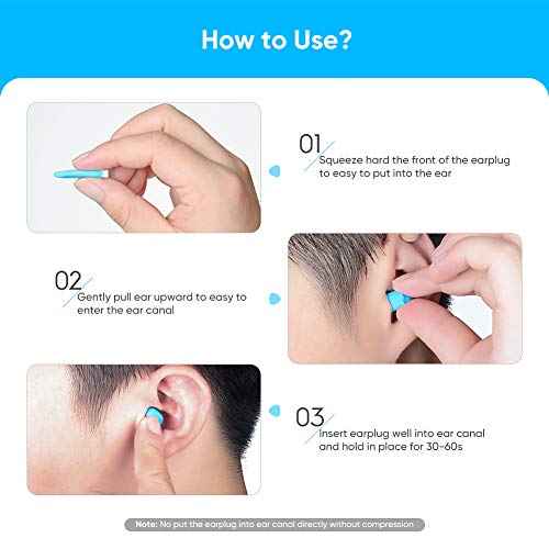 - ¿CÓMO FUNCIONA? Los tapones para oidos se expanden lento una vez insertado en el oído. A medida que los tapones se expanden, se amoldan a la forma única de la oreja, proporcionando una protección para oidos y reducción ruidos. Recomendado: 50s es el momento dorado para que los tapones se expandan y sellen bien en su oído. Por favor espera 50s con paciencia.
