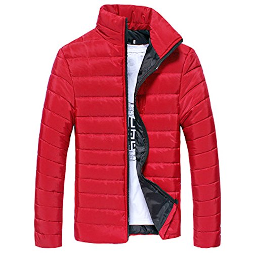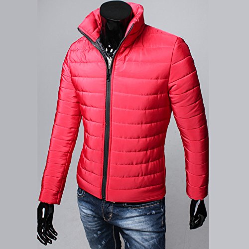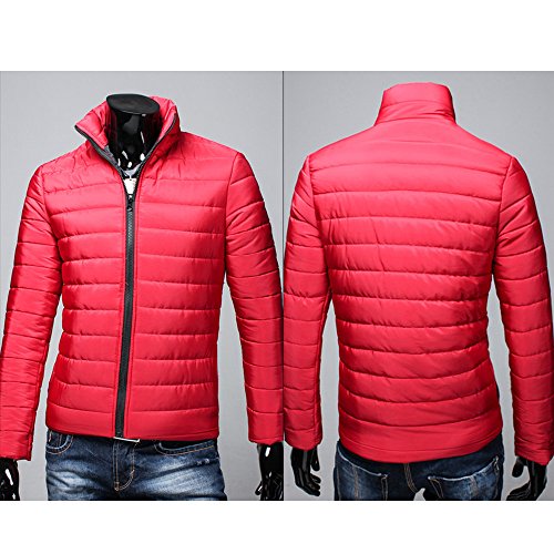 2019 - Chaqueta de plumón para Hombre, de algodón, Ligera, Piel cálida, con Cremallera, con Capucha, Color Liso, Elegante, Slim Fit Hoodie B-Rouge L