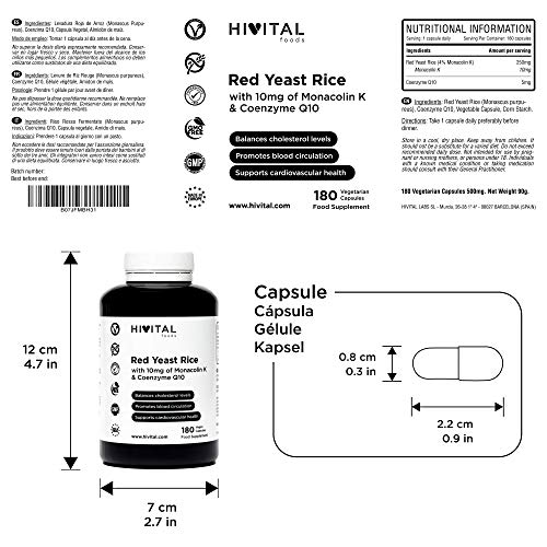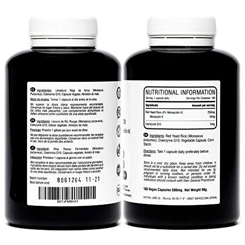 - ? EXCELENTE FÓRMULA a base de Levadura Roja de Arroz (Monascus Purpureus) y Coenzima Q10, que regula los niveles de colesterol sanguíneo. GRAN CANTIDAD DE PRODUCTO AL MEJOR PRECIO: Ofrecemos 180 cápsulas veganas por bote, suministro para 6 meses.