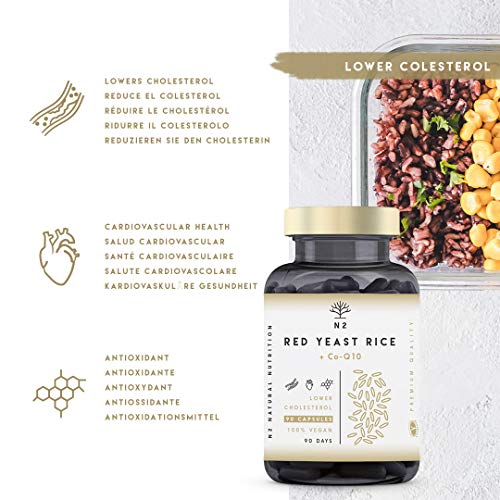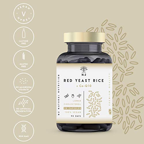- ?LA LEVADURA ROJA MÁS EFICIENTE CON LA MAYOR CONCENTRACIÓN DE MONACOLINA K (5%) y COENZIMA Q10: La Levadura de Arroz Rojo de N2 Natural Nutrition solo contiene ingredientes naturales de la mayor calidad con máxima concentración de principios activos como La Levadura Roja de Arroz (Monascus Purpureus), 5 % Monacolina K y Cantidad de Coenzima Q10 (10 MG.)