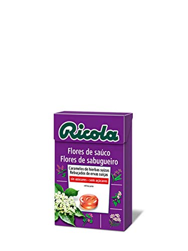 - Caramelos Ricola flor de sauco sin azúcar, proporcionan un suave efecto balsámico que refresca la garganta.