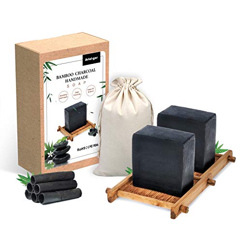 2 pastillas de jabón de carbón de bambú hecho a mano, jabón facial, para todo tipo de pieles, bueno para el eccema del acné Ariel-gxr