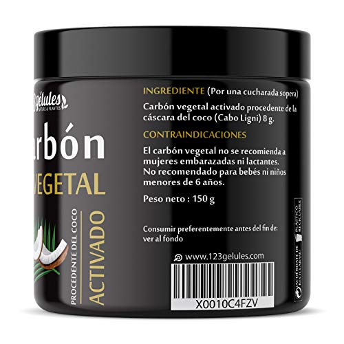 Carbón Vegetal Activado procedente del coco polvo 150 g