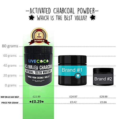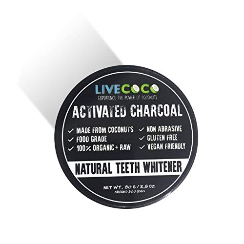 Carbón Activado LiveCoco para Blanqueamiento Dental, Blanqueamiento Dental Natural con Cáscaras de Coco, RAW y Grado Alimenticio sin Aromatizantes Artificiales, 100% Natural, Tina Grande, 80g=300 Us