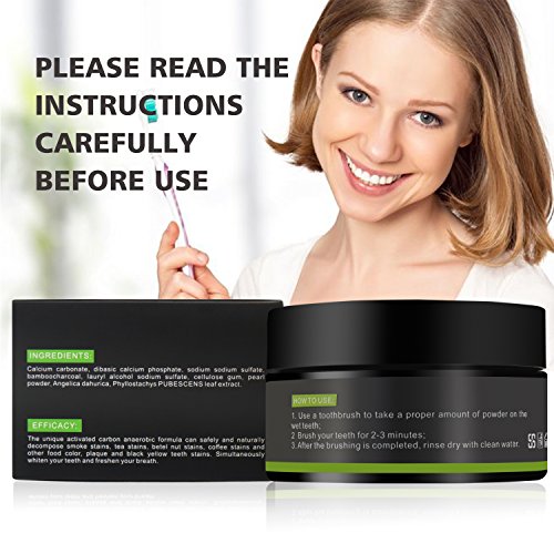 - Eficaz: Los revolucionarios ingredientes del polvo de blanqueamiento con carbón activado se fijan en las manchas rebeldes y permiten que el carbón elimine las marcas y manchas no deseadas de los dientes. Excelente para blanquear los dientes.