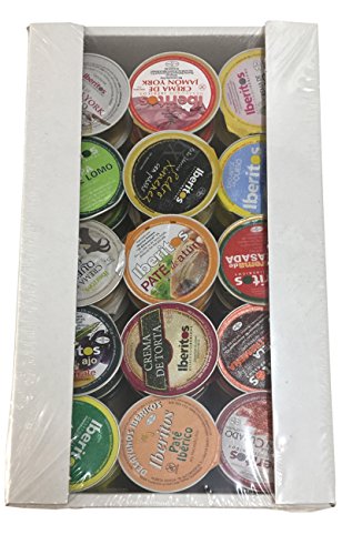 Variado de patés y cremas de Iberitos bandeja de 45 unidades x 23 gramos monodosis para untar en desayunos, aperitivos o meriendas