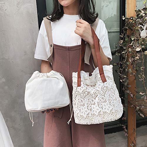 Luckycat Bolsos Bandolera Bolsos de Mano de Encaje Algodón Shoppers Bolso de Hombro de Viaje de Grandes Mujeres Bolso de mujer de moda Bolso de mano grande Bolsos de hombro