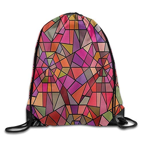 Etryrt Mochilas/Bolsas de Gimnasia,Bolsas de Cuerdas, Mosaic Style Stained Glass Fractal Colorful Geometric Triangle Forms Artful Image Bags Travel Backpack