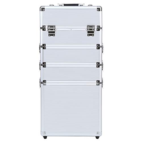 - El estuche de maquillaje trolley viene con cuatro ruedas para un rodamiento silencioso y sin esfuerzo. Las ruedas desmontables se pueden quitar o reemplazar fácilmente si es necesario. La manija deslizante suave con un innovador tubo hexagonal garantiza una excelente estabilidad. Manija en la parte superior para llevarlo cómodamente.