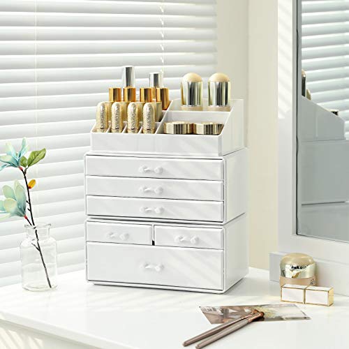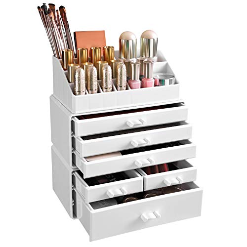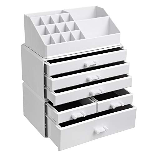 SONGMICS Organizador de Maquillaje Acrílico Grande, Caja de Cosméticos Apilable con 6 Cajones, para Paleta, Cepillo, Base de Maquillaje, Lápiz Labial, Esmalte de uñas, Regalo, Blanco JKA009WT