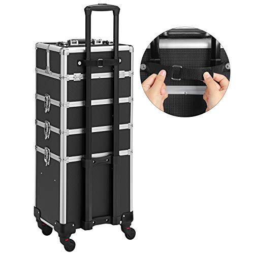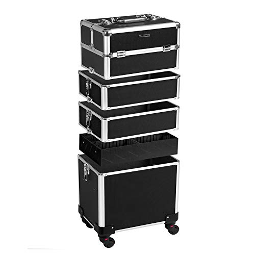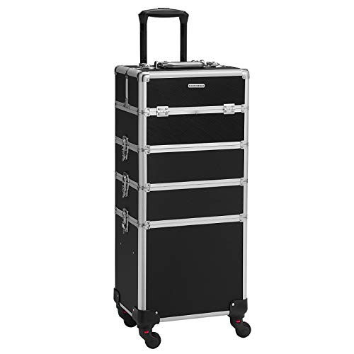 Yaheetech Maletín Cosméticos con Ruedas 4 en 1 Maleta de Maquillaje Negro