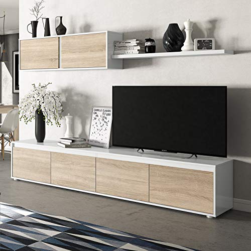 Habitdesign 0F6663A - Mueble de salón Moderno, modulos Comedor Alida, Acabado en Color Blanco Artik y Roble Canadian, Medidas: 43 x 200 x 41 cm de Fondo