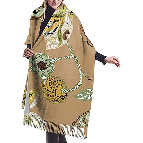 Elaine-Shop Imitar Cachemira Bufanda de invierno Pashmina Chal Wraps Manta Bufandas Envoltura elegante para mujer Patrón sin costuras Hojas de castaño con semillas en beige