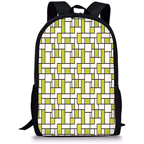 Hui-Shop Mochilas Escolares Geométricas, Cuadrículas de diseño Cuadrados Rectángulos Patrón de Formas abstractas, Castaño Marrón Manzana Verde Crema para Niños Niñas