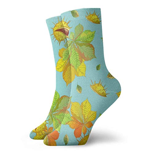 Kevin-Shop Castaño con Hojas Cushion Crew Calcetines Essential Sport Wicking Work para Hombres y Mujeres