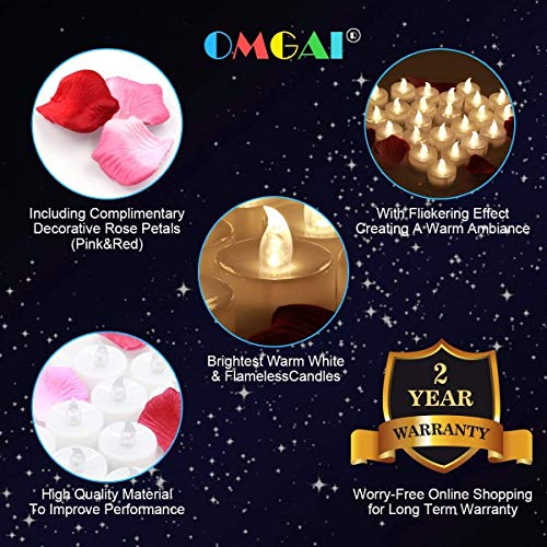 24 Velas LED, Más de 100 Horas de Iluminación y Decoración de Pétalos de Rosa, Velas Electrónicas con Baterías Incorporada, Perfectas para San Valentín