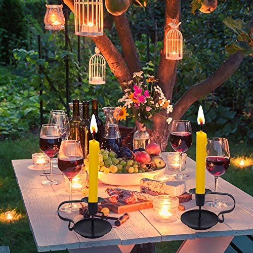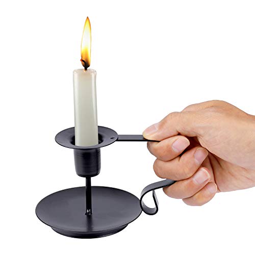 - Robusto y bien hecho: este candelabro está hecho a mano con material de hierro fundido, acabado negro mate y fuertes uniones soldadas. No se oxidará, el elegante diseño elegante de la manija del arco lo hace conveniente para seguir adelante.