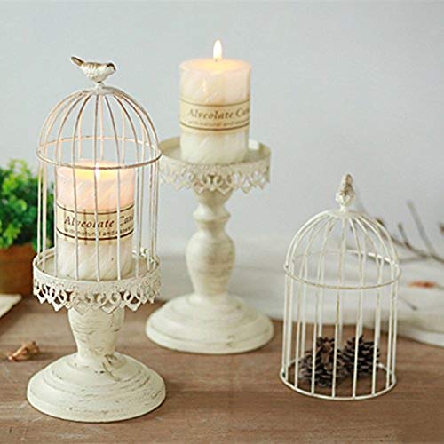 Sziqiqi Candeleros de Retro con Forma de Jaula de pájaro, Decoraciones para la Mesa de Boda, Decoraciones caladas de Hierro, S + L