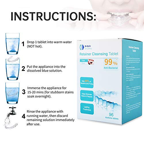 Y-kelin Tableta de limpieza de retenedor ortodóntico Tableta de 96 (96 pestañas)