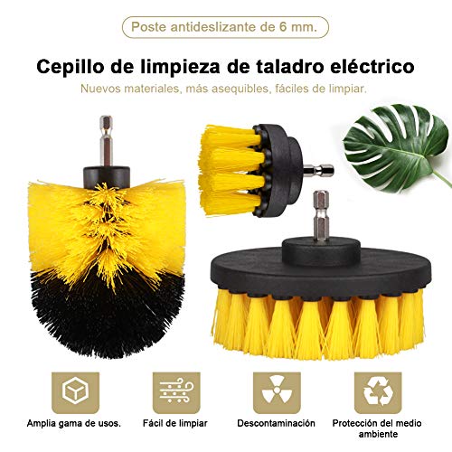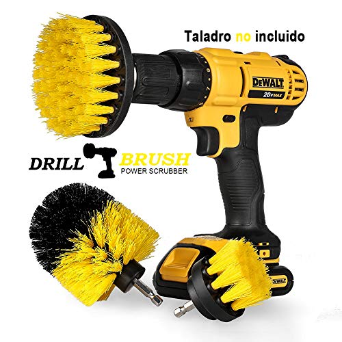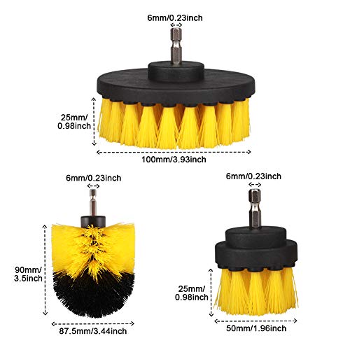 StillCool Drill Brush Cepillos para el Taladro, 3pcs Electric Drill Brush 2"3.5" 4"Cepillo eléctrico para Automóvil, Alfombra, Baño, Piso de madera, Cuarto de lavado, Cocina (Amarillo)