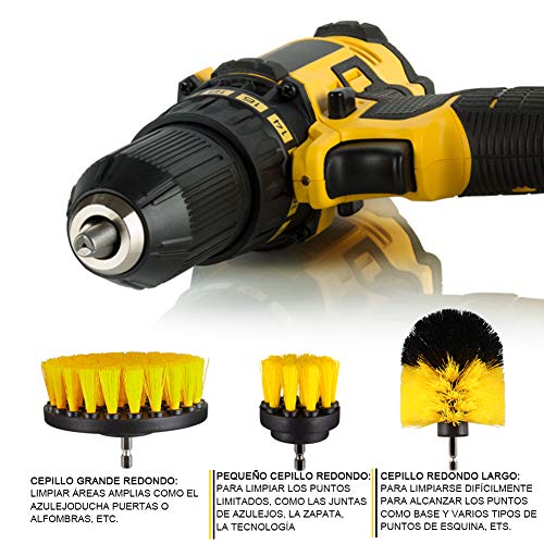 - ćLimpieza fuerteć Cepillos superiores de alta calidad para trabajos medianos combinados con la rotación a alta velocidad del taladro para extraer fĆ”cilmente manchas de tapicerĆa o alfombras de cuero y telas. Estos conjuntos, los cepillos de limpieza de uso mediano estĆ”n disponibles en dos variantes para satisfacer sus necesidades, el diĆ”metro mĆ”s pequeƱo permite el acceso a Ć”reas estrechas y duras, como alrededor de grifos y esquinas.