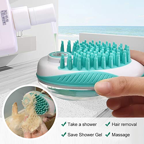- Diseño de cepillo de baño y novio 2 en 1: este cepillo no solo se usa para el baño y el aseo, sino que también se diseña para quitar la piel, masajear, exfoliar, relajar, todo en una multifunción que hace que su mascota disfrute del baño.