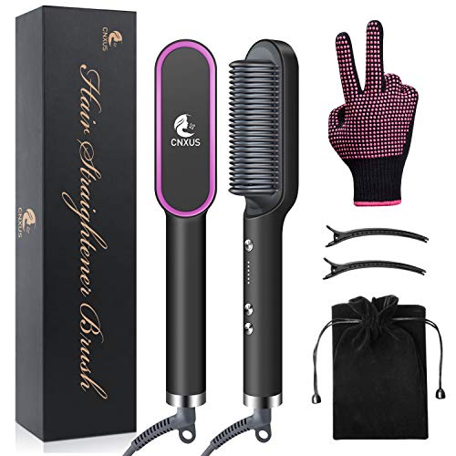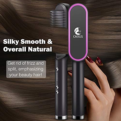 CNXUS Cepillo Alisador, Cepillo Alisador de Pelo, Plancha de cerámica con Peine Indicador LED, Temperatura Regulable, Anti-quemaduras,Apagar Automáticamente
