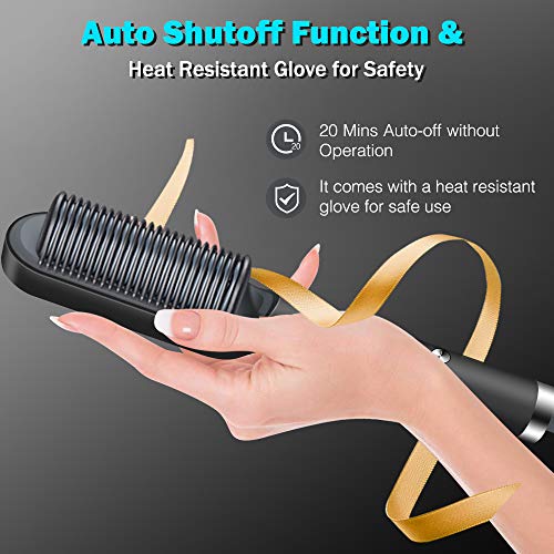 - Calor uniforme y sin daños en el cabello: el peine y los recubrimientos de cerámica mantienen la elasticidad de la barba / cabello, y el calor penetra el cabello desde adentro hacia afuera de manera rápida y uniforme. Y los dientes de peine de goma suave fuera de los dientes de calentamiento de cerámica harán que su cabello esté libre de daños.