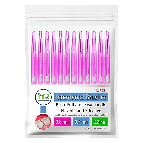 - 12 cepillos profesionales de espacio interdental para dientes de NP-Vital - opcionalmente 0.6 mm / 0.7 mm / 0.8 mm (o en un juego con los 3 tamaños).