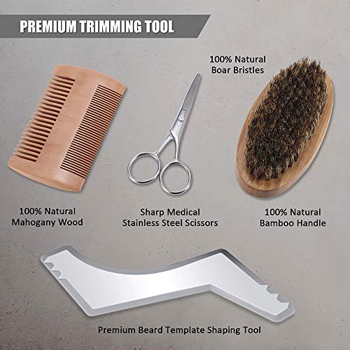 - HAGA QUE EL ESTILADO DE LA BARBA NUNCA SEA MÁS FÁCIL - Nuestro kit de recorte, con materiales actualizados, le brindará la experiencia de recorte perfecta. Un peine de caoba natural sólido puede ayudar a aplicar uniformemente el bálsamo de barba; El cepillo de bambú natural y las cerdas de jabalí pueden eliminar eficazmente la piel muerta, limpiar la barba; Las tijeras afiladas de acero pueden moldear tu barba más fácilmente.